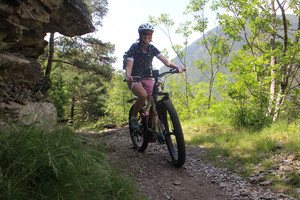 Trento - Riva // Variante II: Wir verlassen Trento im Schatten des Hausbergs Monte Bondone. Über schmale Straßen und Schotterwege gelangen wir hinauf nach Sardagna, dort befindet sich ein 400 Meter über der Stadt liegender Aussichtpunkt der tolle Fotos verspricht. Weiter führt uns die Strecke durch malerische Bergdörfer bis zum Lago di Toblino. Durch das Biotop der Marocche und vorbei an beeindruckenden Felswänden erreichen wir Arco, bekannt als Austragungsort der Kletterweltmeisterschaften. Wir radeln durch die schöne Altstadt und folgen dem Fluss Sarca der uns zu unserem Etappenziel, dem Gardasee führt. Jetzt feiern wir erst einmal ausgiebig unsere Ankunft! Ein Sprung in den See darf nicht fehlen. Wir übernachten in Torbole, Riva, Nago oder Arco. [51 km, 890 hm, F/-]
